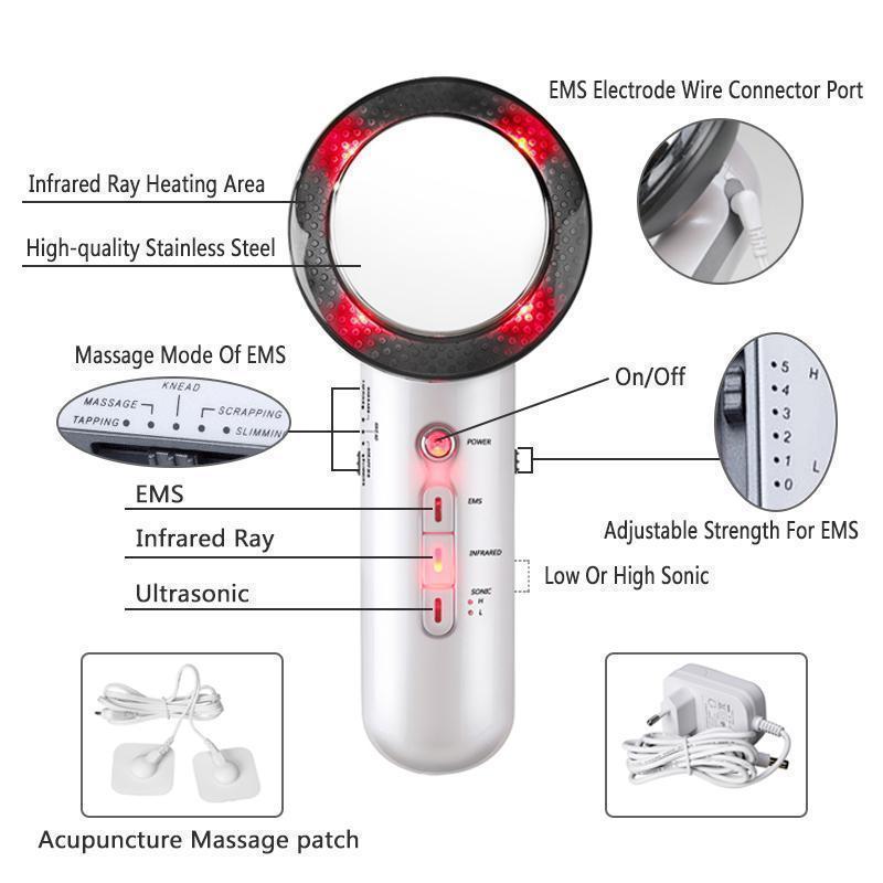 trys viename vibruojantis grožio įrenginys ir amp; Kūno masažuoklis turi šias produkto savybes: