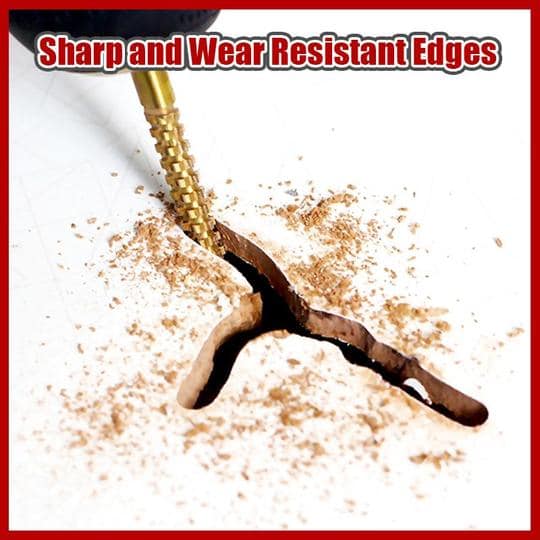 - Pagaminta iš HSS greitaeigio plieno, padengto titanu, grąžtų korpuso kraštai aštrūs, greičiau ir mažiau pastangų.