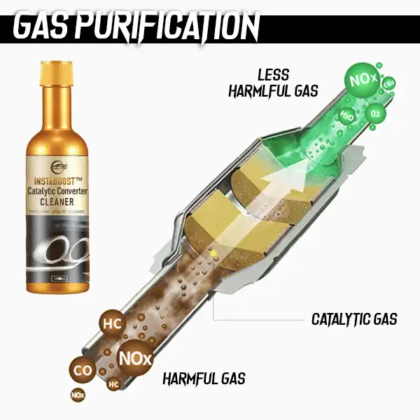 InstaBoost Catalytic Converter Cleaner turi šias produkto funkcijas:
