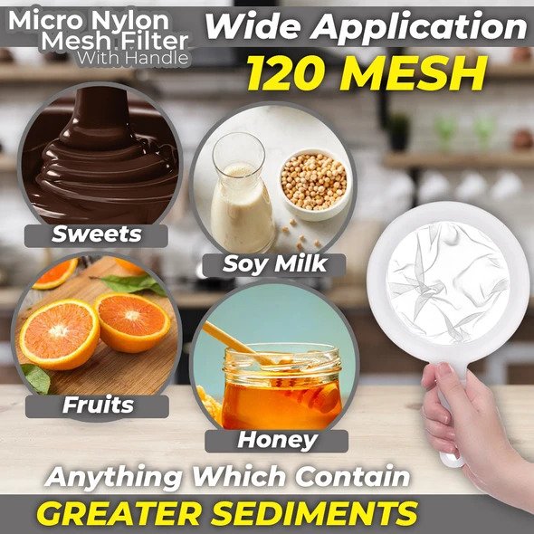 Mikro nailono tinklelio filtras su rankena turi šias produkto funkcijas: