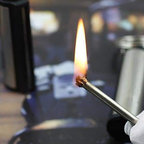 - Nubraukite lazdą prie titnago ir jis užsidegs.