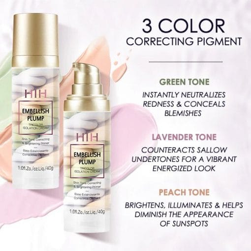 Vaivorykštės trispalvis makiažo pagrindas turi šias produkto savybes: